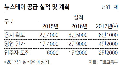 22일 국토교통부에 따르면 정부는 올해 뉴스테이 6만1000채용 토지를 확보하고, 4만2000채에 대해 영업 인가를 내줄 계획이다. 1만1000채는 올해 상반기 입주자를 모집하며 지역은 서울, 경기, 광주, 대구 등 11곳이다.