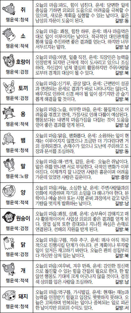 [스포츠동아 오늘의 운세] 2017년 1월 24일 화요일 (음력 12월 27일)