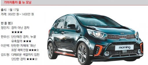 기아자동차가 17일 출시한 올 뉴 모닝은 6년 만에 완전 변경을 시도한 3세대 모델이다. 지난해 한국GM의 스파크에 내준 경차 1위 자리를 되찾겠다는 각오로 초고장력 강판을 44%까지 확대 적용하며 안전성 강화에 초점을 맞췄다.