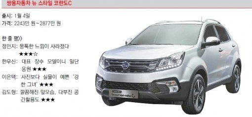 하지만 전월과 비교하면 판매실적이 34.4% 떨어졌다. 쌍용차 전 차종이 지난해 12월에 비해 판매량이 감소한 가운데, 특히 렉스턴(279대)과 코란도투리스모(303대)가 각각 62.5%, 45.2% 주저앉으며 판매 하락을 주도했다. 티볼리도 전월 대비 판매량이 31.4% 줄었다. 새롭게 출시한 5세대 코란도 경우도 지난해와 전월 대비 모두 판매대수가 감소한 것으로 집계됐다.