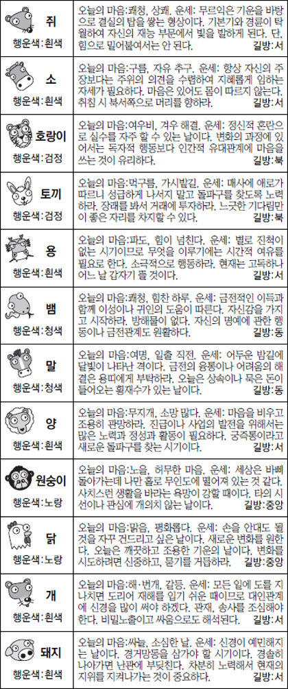 ■ 오늘의 운세|박경호의 운수 좋은 날