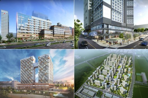 창원 가음정동 라포레-e편한세상 독산 더타워 상업시설-수원 권선 꿈에 그린 단지내 상가-청라 한신더휴 커낼웨이 (왼쪽 위부터 시계방향).