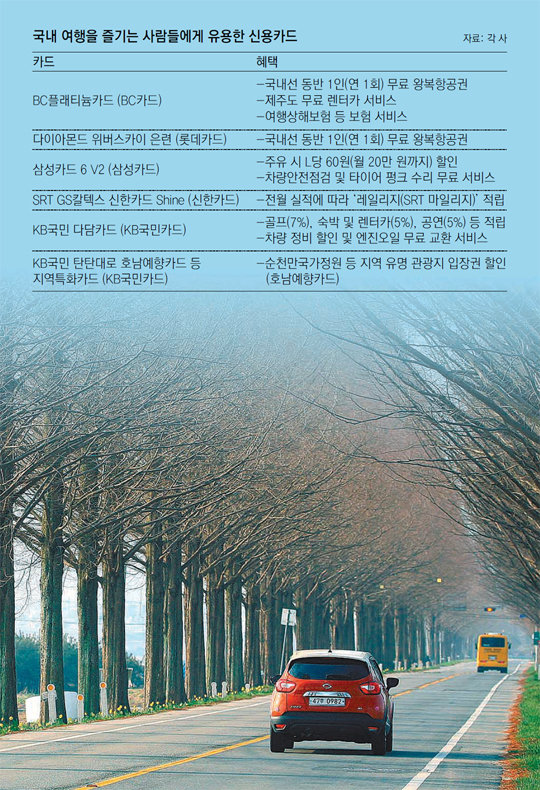 ‘5월 초 황금연휴’가 지나갔다. 긴 연휴는 끝났지만 주말을 이용해 짬짬이 갈 수 있는 국내 여행은 이제부터 시작이다. 날씨가 좋은 5월에는 국내에 갈 곳도 많다. 유채꽃과 청보리가 만개한 충북 충주 남한강변만 걸어도 좋다. 전남 보성에는 초록색 향연이 펼쳐진다. 4월 중순부터 6월까지는 녹차 잎을 따는 시기다. 알뜰 국내 여행에 도움이 될 만한 신용카드 상품들을 소개한다.