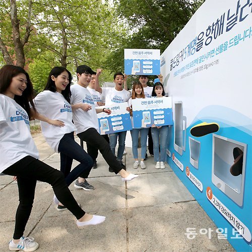 주류업체 디아지오코리아의 대학생 홍보대사 8기 학생들이 16일 서울 성북구 국민대 서울캠퍼스 축제에서 건전한 음주문화의 중요성을 알리는 퍼포먼스를 하고 있다.