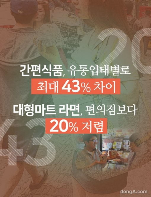 # 최근 1인 가구·맞벌이 가구 비중이 높아짐에 따라 간편식품(즉석조리식품 및 라면류) 수요가 많은 가운데, 간편식품은 대형마트에서 구매하는 것이 대체적으로 저렴한 것으로 나타났습니다.