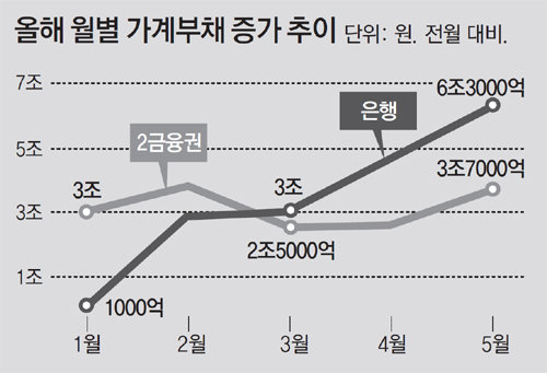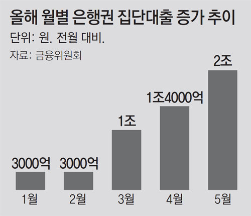 5월 금융권 가계대출 10조 늘어… 은행권 증가액의 30%가 집단대출