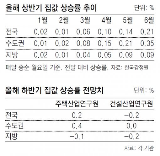 한국감정원에 따르면 지난달(6월 12일 기준) 서울 집값은 0.66%, 세종시는 1.67% 오른 반면 울산(―0.11%) 경남(―0.08%) 충남(―0.05%) 등은 내렸다. 전문가들은 하반기에 이 같은 주택 시장 양극화 현상이 더 심화될 것으로 보고 있다. 입지가 좋고 공급이 부족한 지역은 꾸준히 수요가 몰리는 반면 지방은 집값이 하락하는 등 온도차가 심해질 것이라는 뜻이다.