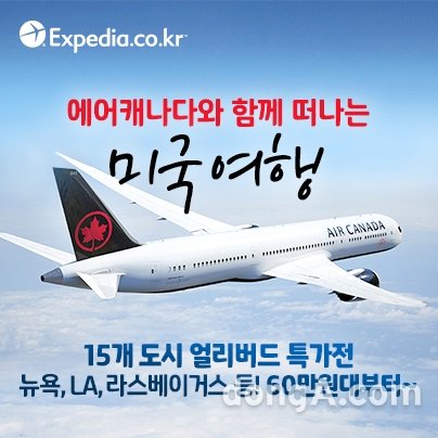 온라인 여행사 익스피디아가 에어캐나다와 함께 미국 항공권 특가 프로모션을 진행한다. 예약은 7월 31일까지 가능하며, 출발 기간은 10월 5일부터 내년 3월 31일까지다. 이번 프로모션은 장거리 항공편을 이용하는 미국 여행객들의 부담을 줄이기 위해 기획됐다. 특가상품은 왕복 항공권을 기준으로 세금과 유류할증료를 포함한 최저가 기준으로 60만원대부터다.