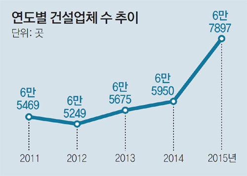이 같은 피해가 늘어나는 이유 중 하나는 최근 건설업이 호황을 맞으면서 자격과 능력을 갖추지 못한 부실업체가 덩달아 우후죽순처럼 생겨났기 때문. 통계청에 따르면 2011년 6만5469곳이던 건설업체 수는 2015년 6만7897곳으로 2428곳 늘었다. 이 중 매출액이 1000억 원을 넘지 않는 중소업체가 94.5%(2015년 기준)에 달한다. 한국건설산업연구원에 따르면 최근 3년 평균 매출액이 1000억 원을 넘지 않는 중소업체 비율은 99.7%까지 올라간다.