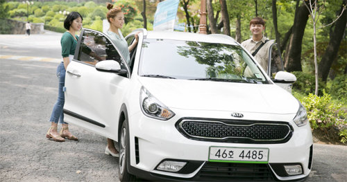 이달 초 연세대에서 차량 공유 서비스인 ‘캠퍼스 카’를 이용하기 위해 사람들이 차량에 오르고 있다. 그린카를 운영하는 롯데렌탈은 4월부터 대학교에 특화된 서비스로 캠퍼스카 사업을 시작했다. 롯데렌탈 제공