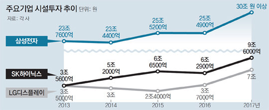 재계 관계자는 “반도체 슈퍼 호황과 디스플레이 업계 기술 세대교체가 겹치면서 투자가 늘어났다”며 “새 정부 출범에 발맞춰 적극적으로 투자 실적을 발표하려는 재계 분위기도 반영됐다”고 분석했다.