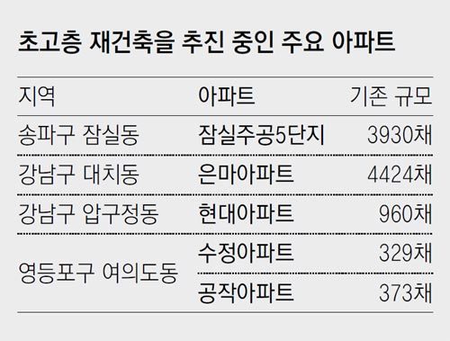 반면 초고층 재건축을 계획 중인 강남구 대치동 은마아파트와 압구정동 현대아파트는 고민이 깊어졌다. 은마아파트는 최고 49층으로 계획한 정비안을 제출했다가 퇴짜를 맞은 상태. 일반주거지역이라 35층 이상 재건축이 불가능하다는 것이 시의 방침이었다. 강남권 주요 재건축단지들은 이를 받아들여 최고 35층 이하로 재건축을 추진해왔다. 은마아파트 재건축조합은 조만간 층수 변경에 대한 투표를 실시할 것으로 알려졌다.