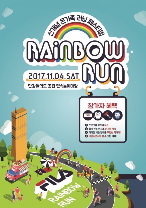 휠라가 11월4일 서울 여의도 한강공원 민속놀이마당에서 열리는 패밀리 러닝 페스티벌 ‘레인보우 런’(사진) 참가자를 모집한다.