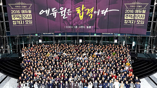 동문회 사무국 김현정 간사는 “공인중개사와 더불어 주택관리사 동문회 역시 에듀윌의 자랑이라 할 수 있다. 동문들이 활동할 수 있도록 본사에서는 체계적인 동문 관리를 책임지고 있으며, 연말 대규모 합격자 모임을 개최한다. 본사의 탄탄한 지원과 합격생들의 끈끈함이 시너지효과를 내어 동문회가 더 빛나는 것이 아닐까 하고 생각한다”고 전했다.