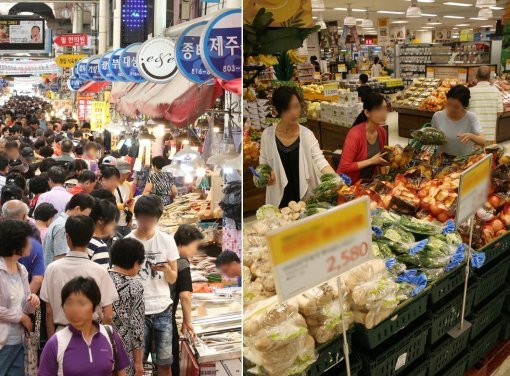 한국소비자원 조사에 따르면 추석 식재료를 구입할 때 신선식품은 전통시장에서, 가공식품은 대형마트에서 구입하는 것이 가장 저렴한 것으로 나타났다.