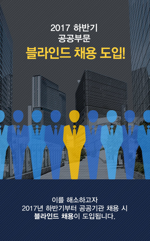 # 이를 해소하고자 2017년 하반기부터 공공기관 채용 시 블라인드 채용이 도입됩니다.