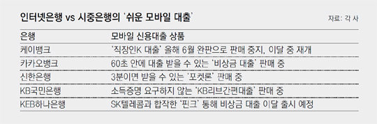 신한-국민 등 모바일전용 대출… 카카오-K뱅크와 비슷한 상품 내놔