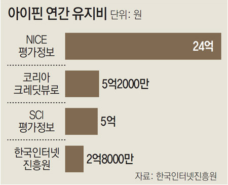 그러나 사업자들은 아이핀 실적이 거의 없더라도 이를 개인인증 수단으로 적용하면서 연간 최소 50만 원 이상의 이용료를 내고 있다. 아이핀이라는 시스템을 운영하기 위해 연간 37억 원에 달하는 유지 비용이 드는데, 아이핀 서비스를 제공하는 본인인증 기관들은 이를 민간업체로부터 이용료를 받아 충당한다.