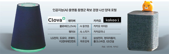 국내 대표 포털 기업인 네이버와 카카오가 자사의 인공지능(AI) 플랫폼을 바탕으로 한 동맹군 구성에 총력전을 벌이고 있다. 삼성전자와 LG전자를 비롯해 YG엔터테인먼트, GS건설 등 포털과 무관해 보였던 업체까지 동맹군 구성에 뛰어들었다. 온라인 검색 맞수로 시작한 두 업체가 PC와 스마트폰을 벗어나 오프라인 일상으로 경쟁 영역을 확대해 나가고 있다.