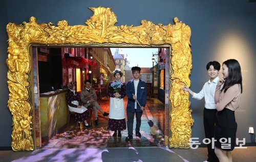명화 작품과 정보기술(IT)이 접목된 맥키스컴퍼니의 테마파크 ‘라뜰리에’가 서울 중구 현대시티아울렛에서 내부 공개 행사를 열었다. 정식 개장은 28일이다. 관람객들이 작품에 들어가 그림의 일부가 되는 체험이 신선하게 다가온다.