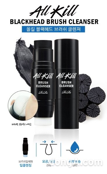 스틱 & 브러쉬 일체형의 클렌징 제품인 올킬 브러쉬 클렌져는 한쪽은 블랙 고체 클렌져, 반대쪽은 미니 브러쉬로 구성돼 있다. 부드러운 독일원사의 미세모 브러쉬가 모공 구석구석까지 딥클렌징해 주며 브러쉬 탈부착이 가능해 세척 또한 용이하다.