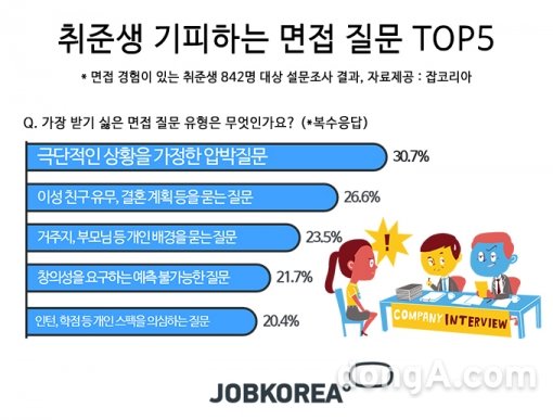 취업포털 잡코리아가 면접 경험이 있는 취업준비생 842명을 대상으로 ‘면접 전형’ 관련 설문조사를 실시하고, 그 결과를 26일 공개했다.
