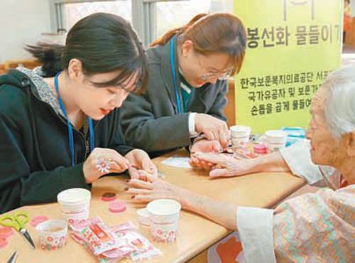 이달 11일, 우리나라 최고 수준의 시설을 보유한 수원보훈요양원에서 2기 서포터즈가 마지막 봉사활동을 진행했다. 이날의 봉사활동에서는 지난 6개월간 전국의 보훈요양원 입소 어르신을 대상으로 진행했던 프로그램 중 가장 반응이 좋았던 5가지의 프로그램을 선정해 다양한 세대간 소통의 접점을 만들었다. 보훈사진관, 봉선화 물들이기, 보훈다방, 꽃반지 만들기, 손마사지 등의 프로그램을 통해 평균 50년에 이르는 나이차를 넘어서 함께 웃으며 잠깐이나마 한 곳을 바라볼 수 있는 시간을 보냈다.