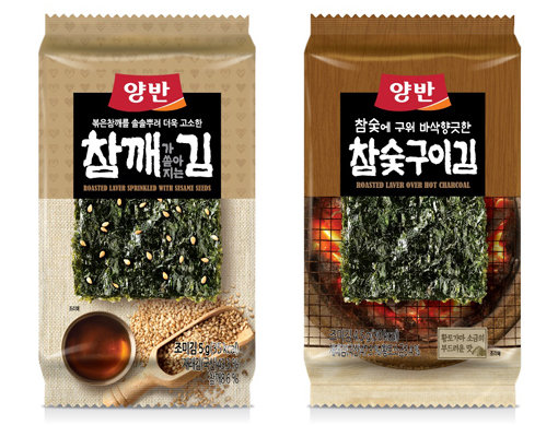 ‘양반 참깨가쏟아지는김’과 ‘양반 참숯구이김’은 각각 16봉 묶음에 5980원이다.