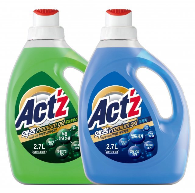 새롭게 첨가된 천연효소는 기존 제품에 비해 세척력을 대폭 향상시켰으며 천연 유래 항균성분으로 안심하고 사용할 수 있다. 또 눈에 보이지 않는 초미세 오염까지 없애 실내 건조의 꿉꿉함이나 옷에 밴 땀냄새를 완벽히 잡아준다. 액츠 ‘프리미엄젤’은 상쾌한 ‘프레시’와 ‘유칼립투스’의 두 종류다. ‘프레시’는 자몽의 구연산 성분으로 살균 기능이 뛰어나며, 꿉꿉한 냄새를 잡아주는 유자 성분에 상쾌한 민트향을 더해 새 옷 같은 산뜻함과 깨끗함을 경험하게 한다. ‘유칼립투스’는 항염에 좋은 고삼과 정향 등의 성분을 넣어 피부에 민감한 아이 옷이나 속옷 빨래에 안심하고 이용할 수 있다.