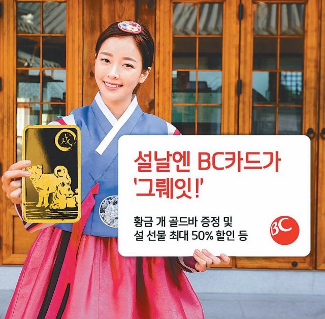 이번 이벤트는 18일까지 BC신용·체크카드 고객을 대상으로 △‘황금개 골드바’ 및 스타벅스 모바일상품권 추첨 △전 가맹점 무이자할부 △백화점·대형마트·슈퍼 설 선물세트 할인 및 상품권 증정 등 다양한 혜택을 제공한다.