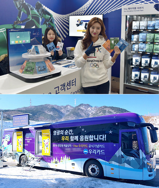 롯데카드와 우리카드가 평창동계올림픽 현장에 출격했다. 양사 모두 올림픽 월드와이드 파트너사인 비자(VISA)와 손을 잡고 올림픽을 준비해 왔다. 우리카드는 평창올림픽 공식 기념 카드를, 롯데카드는 올림픽 관람객용 비접촉식 결제 수단인 비자 롯데카드 웨어러블을 각각 내놓았다. 경기장을 비롯한 올림픽 현장에서는 비자 로고가 박힌 카드만 결제 가능한 상황에서 두 카드사 모두 이번 올림픽을 국내시장 확대는 물론 글로벌 시장 진출을 위한 마케팅의 좋은 기회로 삼고 있다.