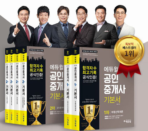 <2018 에듀윌 공인중개사 기본서 1차 세트>는 현재 온라인 서점 예스 24 공인중개사 부문에서 1위를 차지하고 있으며 기출문제집, 부동산공법 체계도, 기초서 세트 등이 연달아 상위권을 휩쓸며 저력을 과시하고 있다. 최근에는 수험생들이 어려워하는 공법 과목 마스터를 위한 ‘부동산공법 합격노트’를 출간했다.