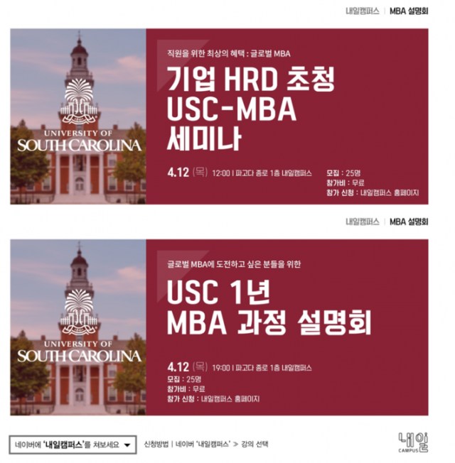 파고다교육그룹 내일캠퍼스는 미국 사우스캐롤라이나대학(University of South Carolina)과 함께 MBA 과정 세미나를 개최한다고 3일 밝혔다.