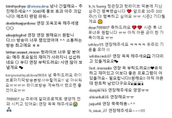 마지막 방송 이후 ‘sm_ccc_lab’ 인스타그램 공식 계정과 정관장 관계자 인스타그램에는 방송의 연장을 원하는 팬들의 요청이 쏟아졌고, 이에 2회 연장 방송을 결정하게 됐다. 이를 알리는 방송 공지 게시물에는 좋아요 900개가 달리기도 했다.