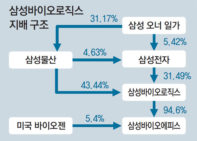 2015년 합병 당시 5조 원 이상으로 평가한 삼성바이오에피스 지분 가치가 지분 91.2%를 갖고 있던 삼성바이오로직스의 회계장부에 반영됐고, 이는 삼성바이오로직스 지분을 46.3% 보유한 옛 제일모직에 유리한 합병 비율을 정당화하는 근거가 됐다는 게 금감원의 논리다.