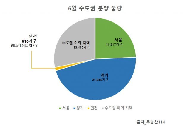 29일 부동산114 자료에 따르면 다음달 수도권 분양 물량(임대포함)은 총 35개 단지, 3만3981가구로 나타났다. 지난해 6월 분양 물량인 1만9147가구보다 56.35% 증가한 수치이며 올해 상반기(1~6월) 분양 물량 중 가장 많다.