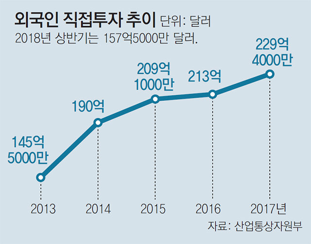 북-미 정상회담이 성사되는 등 남북 해빙 무드로 외국인 투자가들의 관심이 높아지고 있고, 중국과의 경제 협력이 더 확대될 가능성이 높아 연간 FDI 실적도 200억 달러를 달성할 가능성이 높다는 게 정부 전망이다. 다만 글로벌 보호무역주의 확산, 미국 세제 개편, 한국과 미국 간 금리 격차 확대 등 하반기 투자가 위축될 요소도 많다. 산업부 관계자는 “신규 투자 위주에서 기존 투자 기업의 증액 투자로 유치 노력 범위를 넓히는 등 다양한 노력을 기울일 것”이라고 말했다.