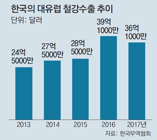 작년 한국 對유럽 수출액 4조원… 판재류 생산 대기업 타격 불가피