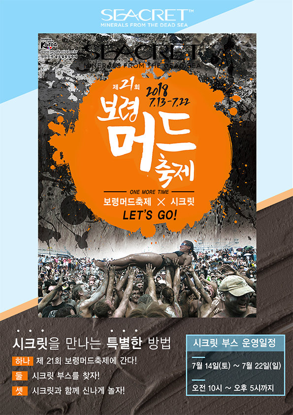 이스라엘 사해 화장품 ‘시크릿(Seacret)’이 ‘보령머드축제’에 이벤트 라운지를 개설하고 국내외 피서객 맞이에 나선다고 6일 밝혔다.