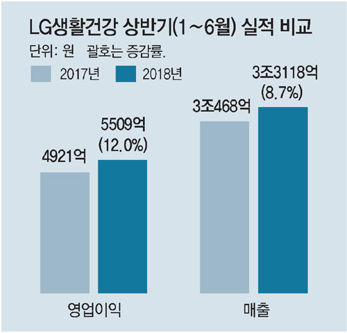 LG생활건강의 음료사업 부문은 상반기에 매출 6788억 원, 영업이익 754억 원으로 지난해 같은 기간보다 3.6%, 2.7% 늘었다. 반면 생활용품 사업의 상반기 매출은 7319억 원, 영업이익은 692억 원으로 각각 5.2%, 25.4% 줄었다. 이는 최근 내수 중심인 생활용품 시장의 규모 자체가 줄어들고 있기 때문으로 풀이된다. LG생활건강 관계자는 “프리미엄 제품군 강화와 중국을 비롯한 해외시장 진출로 돌파구를 모색하고 있다”고 설명했다.