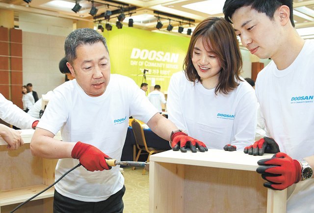 두산그룹은 지역사회에 기여하기 위해 ‘더불어 사는 삶의 실천’을 목표로 다양한 사회공헌활동을 펼치고 있다. 두산인 봉사의 날(Doosan Day of Community Service)은 전 세계 두산 임직원이 ‘한날 동시에’ 각 사업장 인근 지역사회와 이웃을 위해 나눔을 실천하는 행사다. 2014년 10월 처음 시작한 이후 여섯 번의 행사를 거치며 전 세계 20여 개국에서 약 5만2000여 명의 임직원이 참여한다. 올해는 4월 25일, 미국, 중국, 영국, 인도, 사우디, 남아공 등 전 세계 19개국에서 7000여 명의 임직원이 참여했다.
