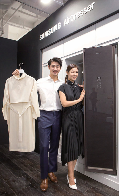 삼성전자가 8월 21일 서울 강남구 청담동에 위치한 드레스가든에서 의류청정기 ‘에어드레서’ 미디어데이를 개최했다. 삼성전자가 이날 공개한 ‘에어드레서’는 에어, 스팀, 건조, 청정의 4단계 전문 의류 청정 방식을 적용해 의류의 미세먼지와 냄새를 확실하게 제거해 주는 혁신 제품이다. 이 제품에는 세탁기의 스팀 기술, 건조기의 저온제습 기술뿐 아니라 에어컨의 바람 제어 기술, 냉장고의 냄새제거 기술, 공기청정기의 필터 기술까지 삼성전자 가전 혁신 기술이 총망라됐다. 또한 삼성전자는 실사용자 심층조사를 통해 가장 중요한 미세먼지 제거는 물론 까다로운 관리가 필요한 의류도 가정에서 손쉽게 전문적으로 관리할 수 있도록 인공지능을 기반으로 한 독자적 의류관리 솔루션을 대거 적용했다.