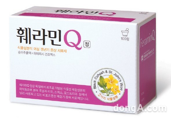 동국제약 훼라민큐는 여성갱년기 치료제 판매 1위 제품이다. 서양승마(블랙코호시)와 세인트존스워트 생약 복합성분이 함유돼 있어 여성 갱년기 증상을 개선해 주는 기능을 발휘한다. 호르몬제가 아니면서 동등한 효과를 발휘하는 것이 특징이며 호르몬제가 유발할 수 있는 부작용(유방암, 심혈관 질환)이 없는 생약 성분 일반의약품이다.