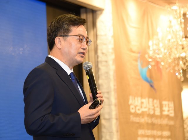 김 부총리는 이날 여의도 CCMM빌딩에서 열린 ‘2018 상생과통일 포럼-한국경제 길을 묻는다’에 참석해 ‘두 개의 길과 하나의 선택’이라는 주제로 한 기조발제에서 “소득주도성장은 혁신성장과 같이 가는 정책적 운용의 묘를 살리는 것이 굉장히 중요하다”며 이같이 밝혔다.