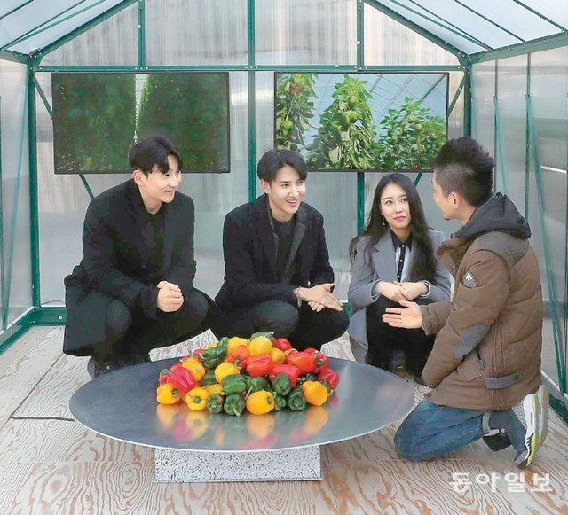 농림수산식품교육문화정보원은 30일 서울 종로구 동아일보 사옥 앞에서 현대미술작품 전시회를 열었다. 이날 전시회는 도시인들이 농업과 농촌의 가치를 일상에서 자연스럽게 느낄 수 있도록 하자는 목적으로 마련됐다. 전시회장을 방문한 관람객들이 전시작품 안에 들어가 앉아서 작품을 살펴보고 있다.
