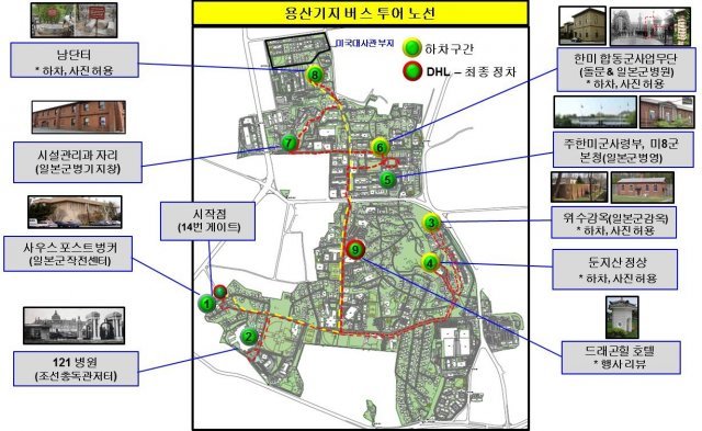 국토교통부와 서울시는 용산 미군기지 내 주요 장소를 버스로 둘러 볼 수 있는 ‘용산기지 버스투어’를 2일부터 올해 말까지 6차례 진행한다고 밝혔다.
