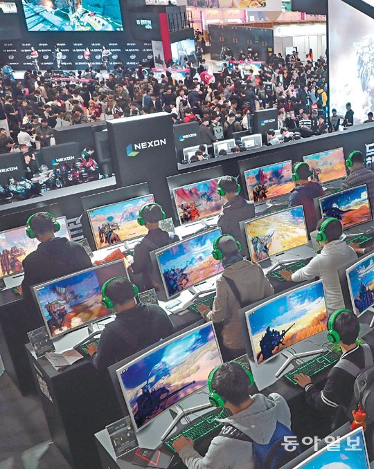 15일 부산 벡스코에서 개막한 국내 최대 게임전시회 ‘지스타 2018’에서 관람객들이 다양한 신작 게임을 즐기고 있다. 18일까지 이어지는 지스타에는 36개국 689개사가 참가해 모바일과 온라인, 가상현실(VR) 등 게임을 선보인다.