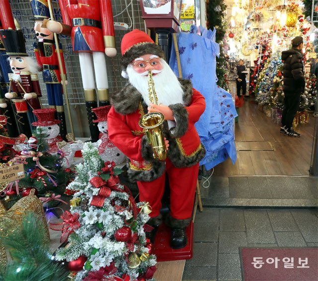 크리스마스를 앞두고 2일 서울 중구 남대문시장의 한 상점에 트리, 산타 모형 등 크리스마스 관련 용품들이 전시돼 있다.