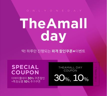 4일 단 하루 동안 '더에이몰' 고객에게 30% 할인 쿠폰을 지급하며, 쿠폰은 한 상품 당 1회, 한 주문 건 당 1회씩 사용 가능하다. 해당 쿠폰은 4일 오전 0시 주문 건부터 할인이 적용된다.