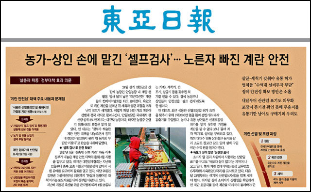그런데 농가, 유통 상인도 일정 설비만 갖추면 식용란 선별포장업 허가를 받을 수 있다 보니 ‘셀프 검사’라는 비판이 일었다. 이에 정부는 농가, 유통 상인, 전문가로 구성된 태스크포스(TF)팀을 꾸리고 식용란 선별포장업체에 검사요원을 상주시키는 방안을 논의하기로 했다. 식용란 선별포장업체에 수의사가 상주하며 안전에 문제가 없는지 확인하는 우유 집유장이나 육류 도축장처럼 만들겠다는 구상이다.